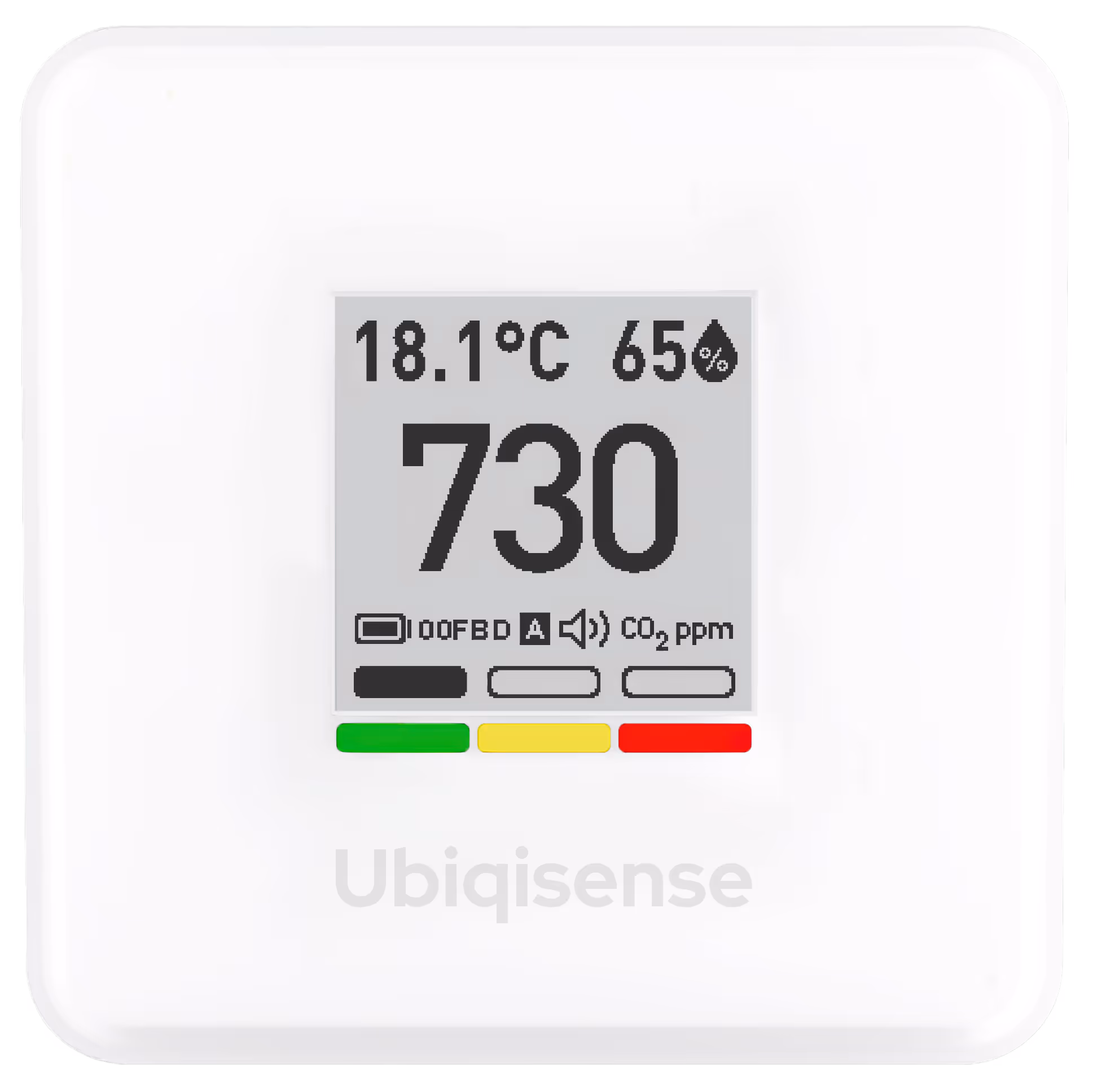 Ubiqisense UC-IAQ is an advanced sensor measuring CO2, temperature, humidity, and atmospheric pressure.